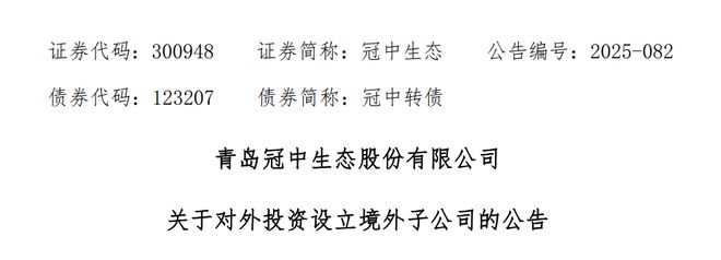9月8日晚间,青岛冠中生态有限公司(以下简称“冠中生态”)发布公告称,公司拟在英属维尔京群岛、中国香港及吉尔吉斯斯坦设立全资子公司,并通过吉尔吉斯斯坦子公司投资建设种苗繁育基地。此举旨在推动公司海外业务发展,提升国际竞争力。